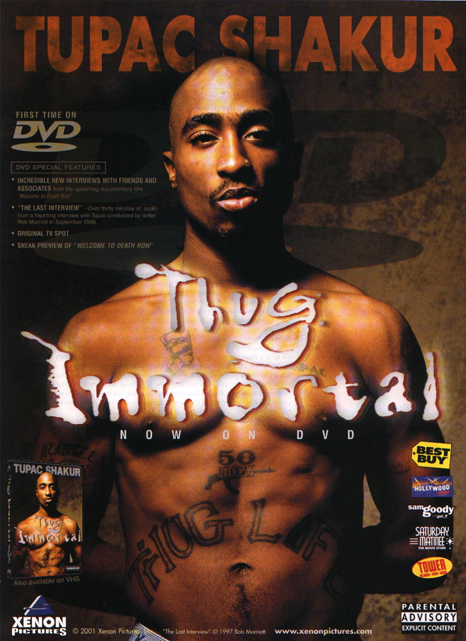 In the latest issue of XXL there's an advertisement for Thug Immortal on DVD. It's the same as the VHS, but it has got extra features, including an interview from September, 1996 and more interviews with friends of his. According to the advertisement the DVD is available for purchase at Best Buy and Sam Goody.